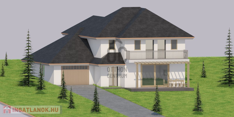 Gyönyörű elvehetetlen panorámás környezetben, könnyen megközelíthető aszfaltozott utcában, minden igényt kielégítő 5 hálószobás modern, alacsony rezsijű családi ház épül.