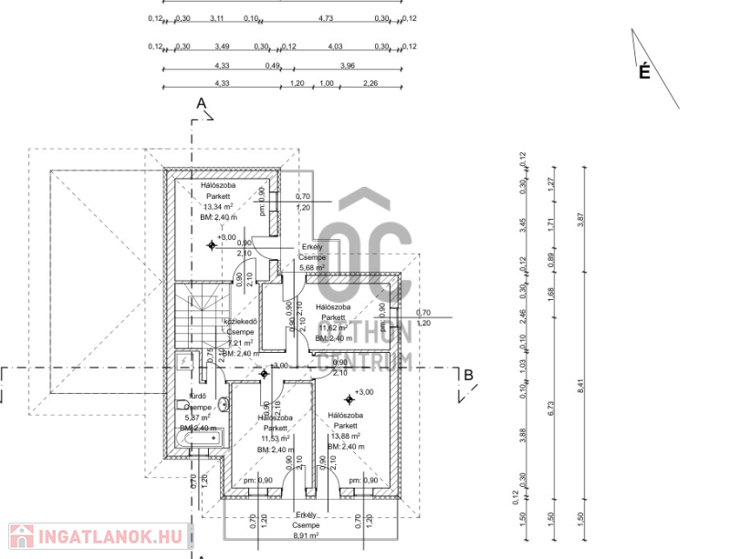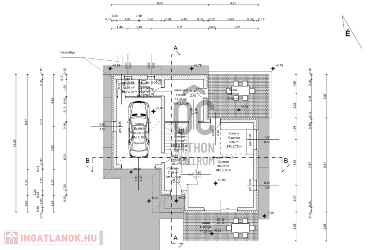 Hatalmas déli tájolású amerikai konyhás nappalival, közel 26nm nagyságú garázzsal, minden szoba erkély vagy terasz kapcsolattal kerül megépítésre. Belső tér kialakítása, szobák mérete, válaszfalak elhelyezkedése még változtatható. Itt az alkalom, váltsa valóra álmait, legyen részese új családi házának építésében.