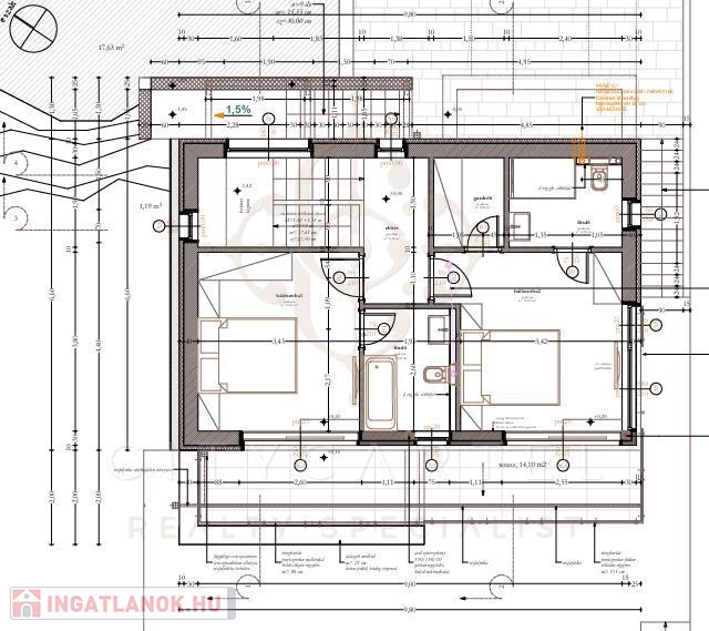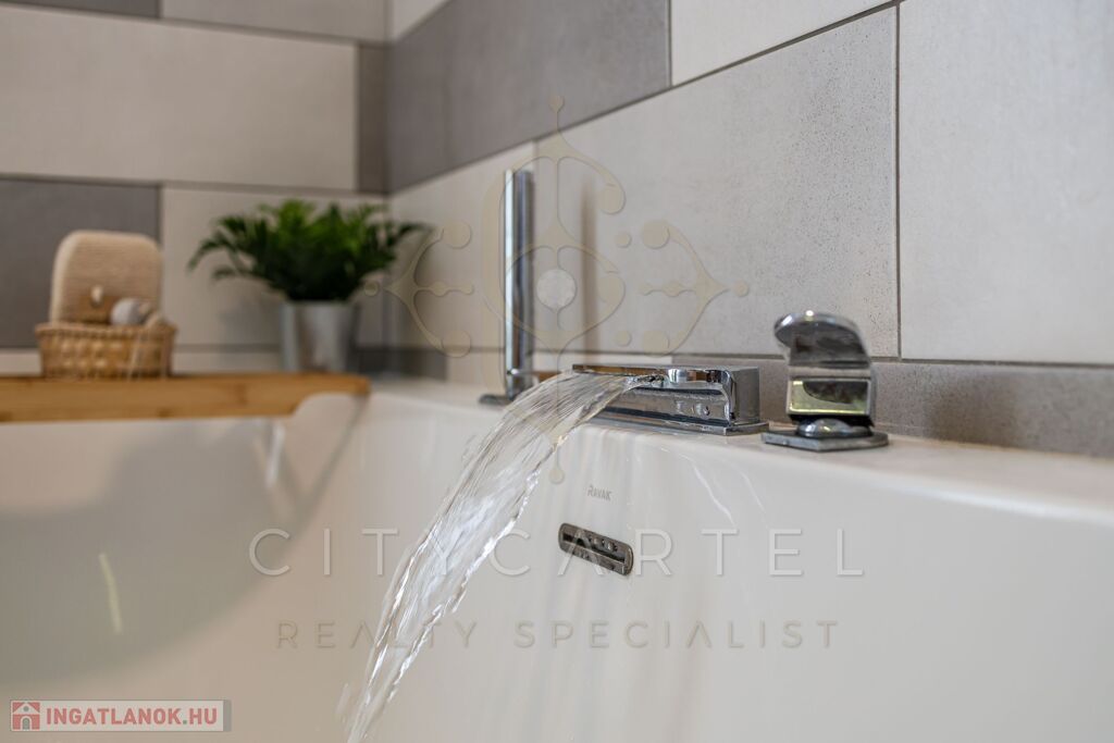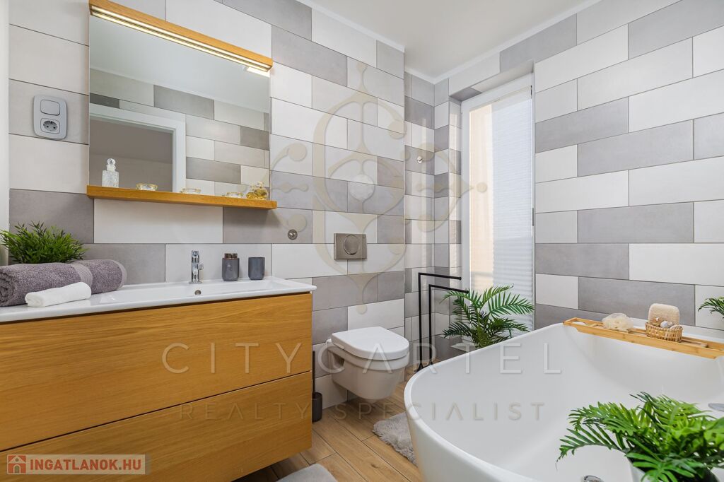 Az egyik hálóhoz kádas fürdő toalettel, a másikhoz zuhanyzós fürdő toalettel és gardróbbal