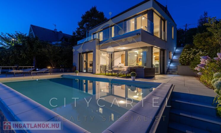 PANORÁMÁS MINIMÁL HÁZ SZENTENDRE LEGSZEBB RÉSZÉN – FŰTHETŐ MEDENCE, PARKOSÍTOTT KERT, OKOS MEGOLDÁSOK