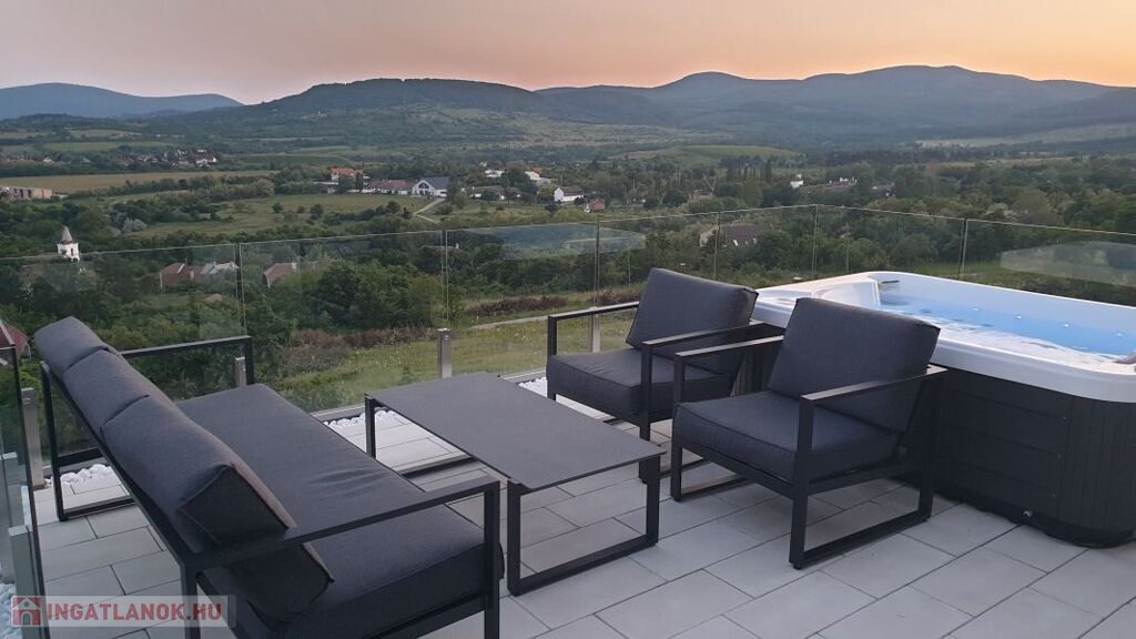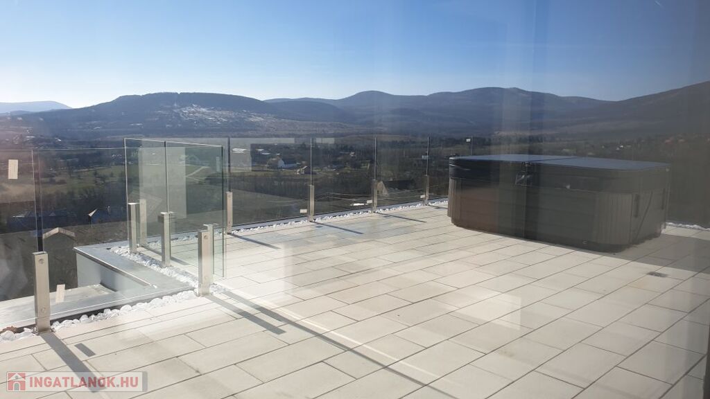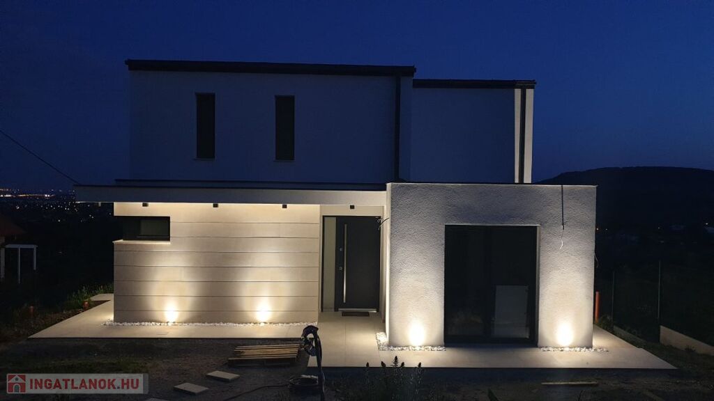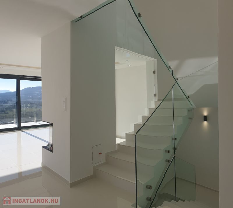 Az ingatlan 1085 nm-es utcától lejtős, teraszosított, minden pontjáról panorámás telken épült. / A telekrendezés folyamatban van. / A hasznos lakóterület 180 nm, melyhez három terasz kapcsolódik, ezek alapterülete összesen 100 nm.