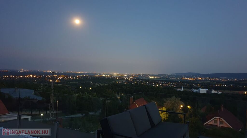 Szentendre Pismány hegyen eladó egy háromszintes, vadonatúj minimál villa elvehetetlen panomával Dunakeszitől Budapesten át, a Skanzenen keresztül a Pilisi Parkerdőig.