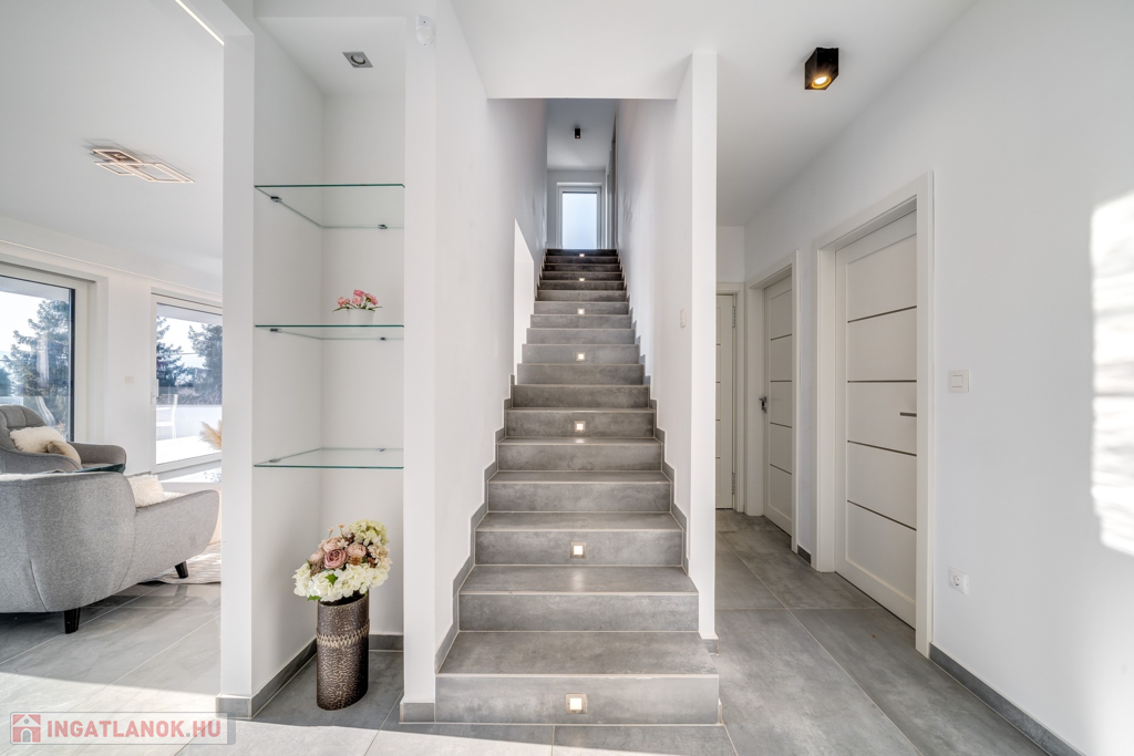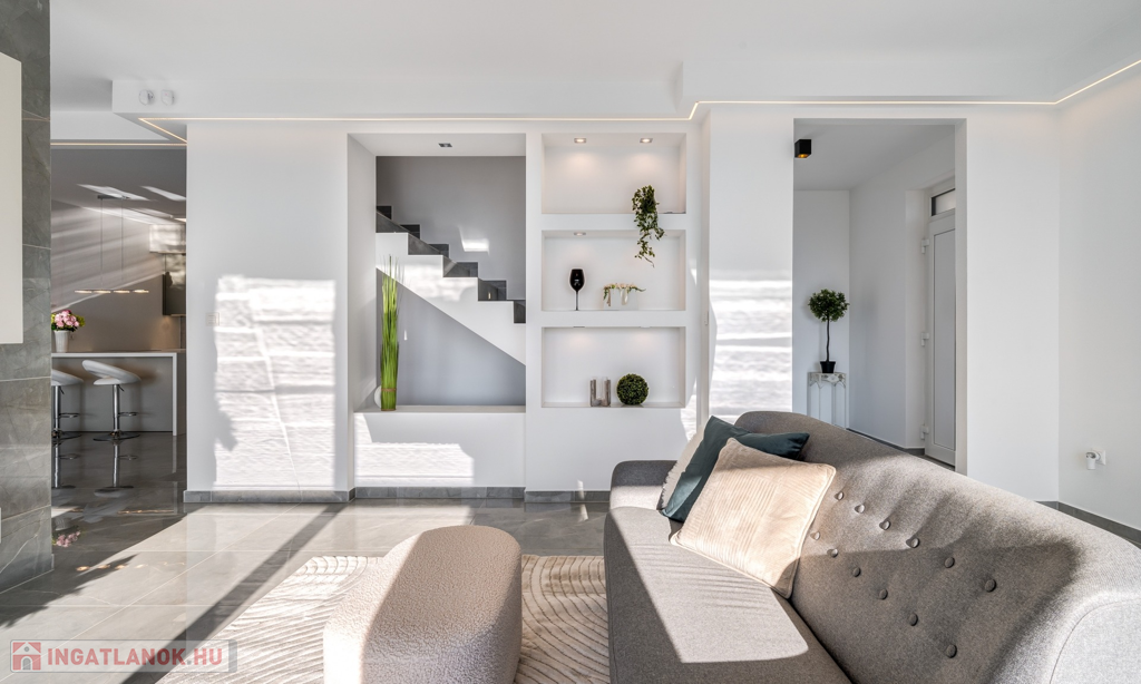 A hatalmas üvegfelületek és a padlótól a mennyezetig érő prémium gondoskodnak a fényárban úszó, tágas terekről, míg az energiahatékony megoldások és okos rendszer garantálja a kényelmet és a fenntartható működést.