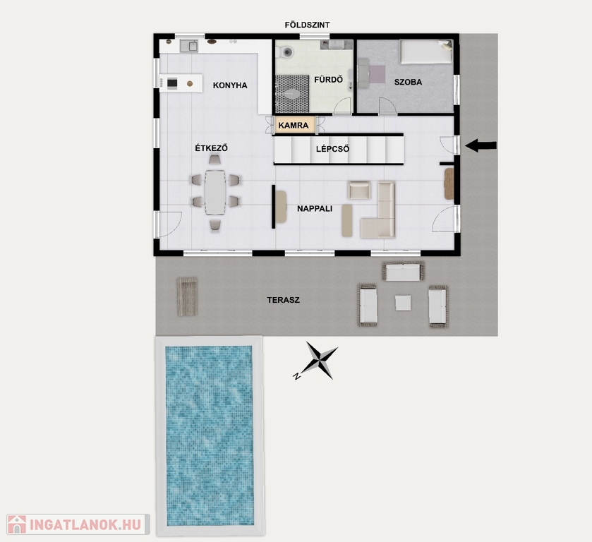 -32 m2 terasz, medence kapcsolattal,