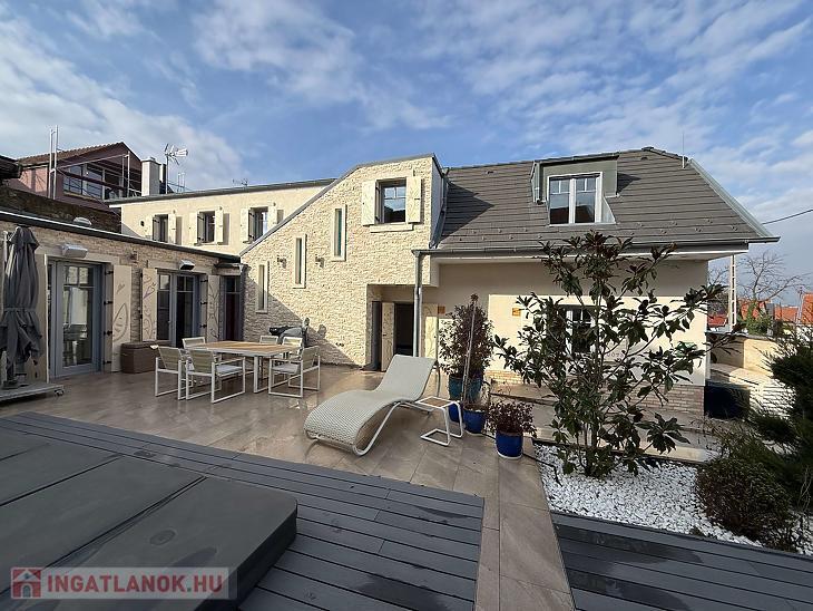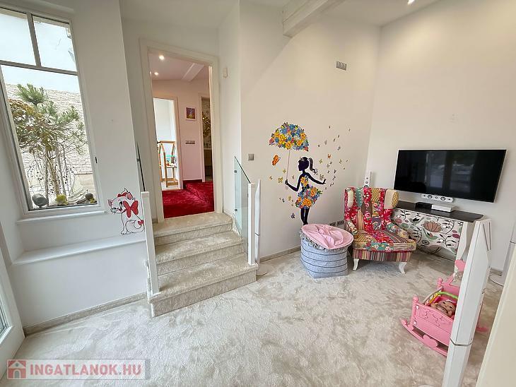 -A 2012-ben, prémium minőségben épült ingatlan 220 m² lakóterülettel rendelkezik, amely egy 345 m²-es, intim hangulatú telken helyezkedik el.