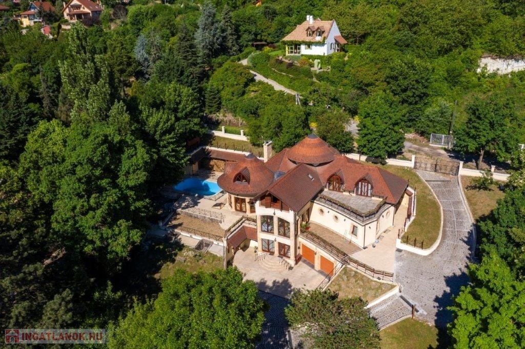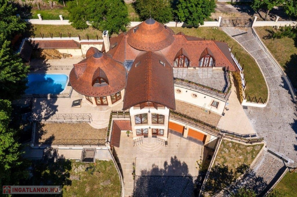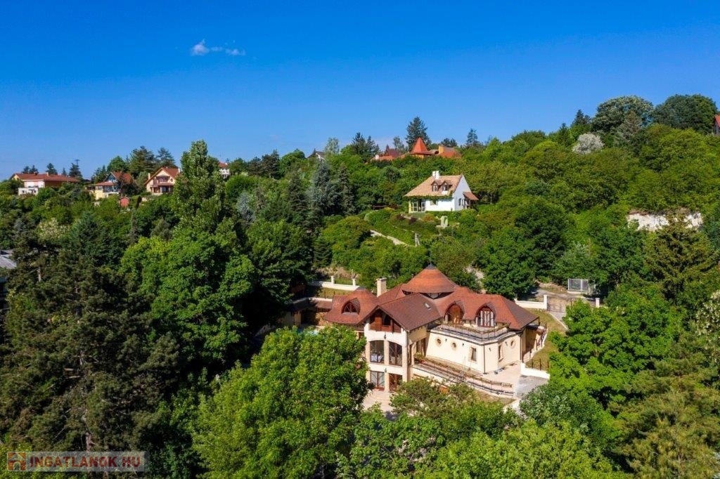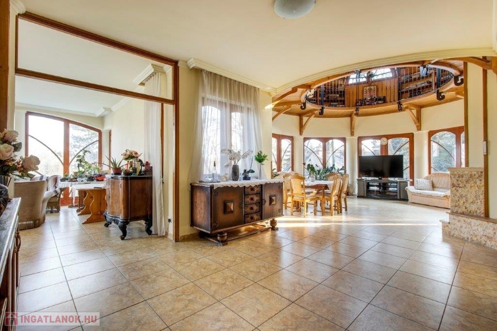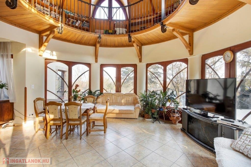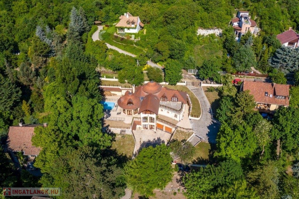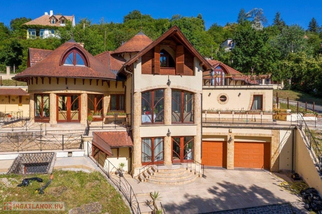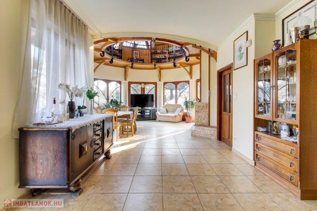 Szentendrén eladó egy 2011-ben épült, 3 szintes „Organikus” családi ház (6 hálószoba - mindegyik fürdőszobával, nappali kupolás galériával és hatalmas teraszok csodálatos panorámával, szabadtéri medence, boros „pince”, konditerem, szauna, az alsó szinten egy szolgálati lakás van kisegítő személy részére).