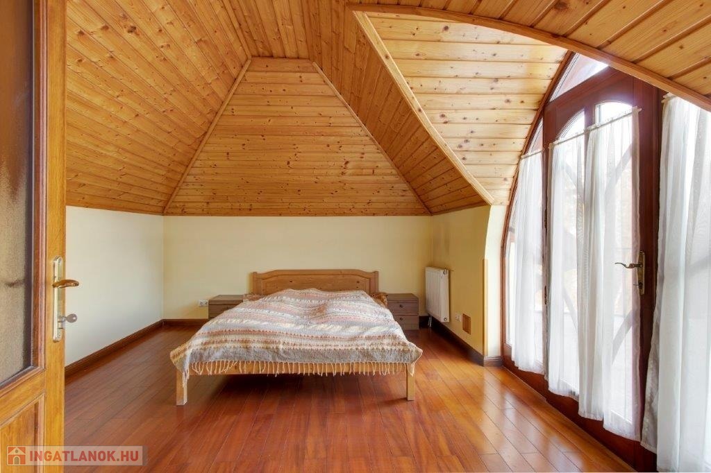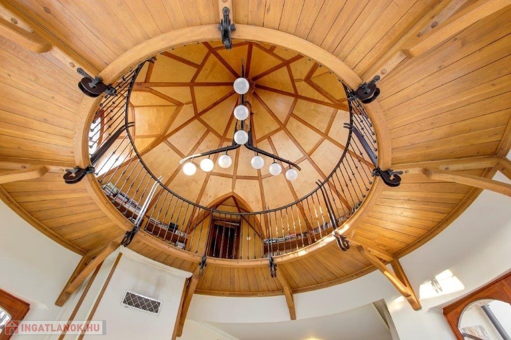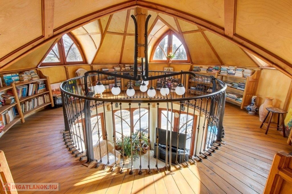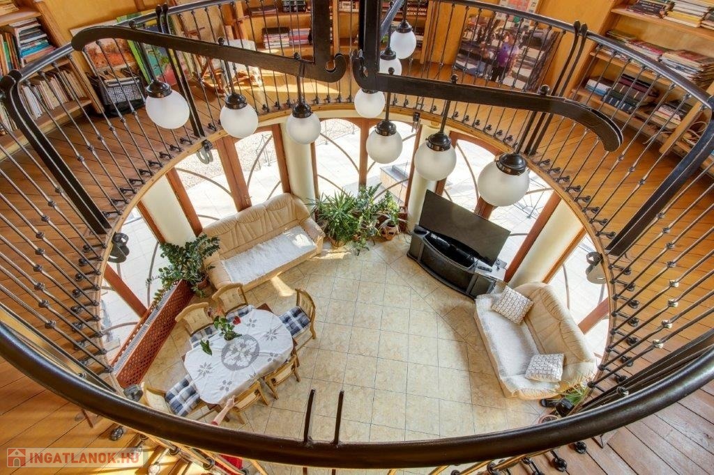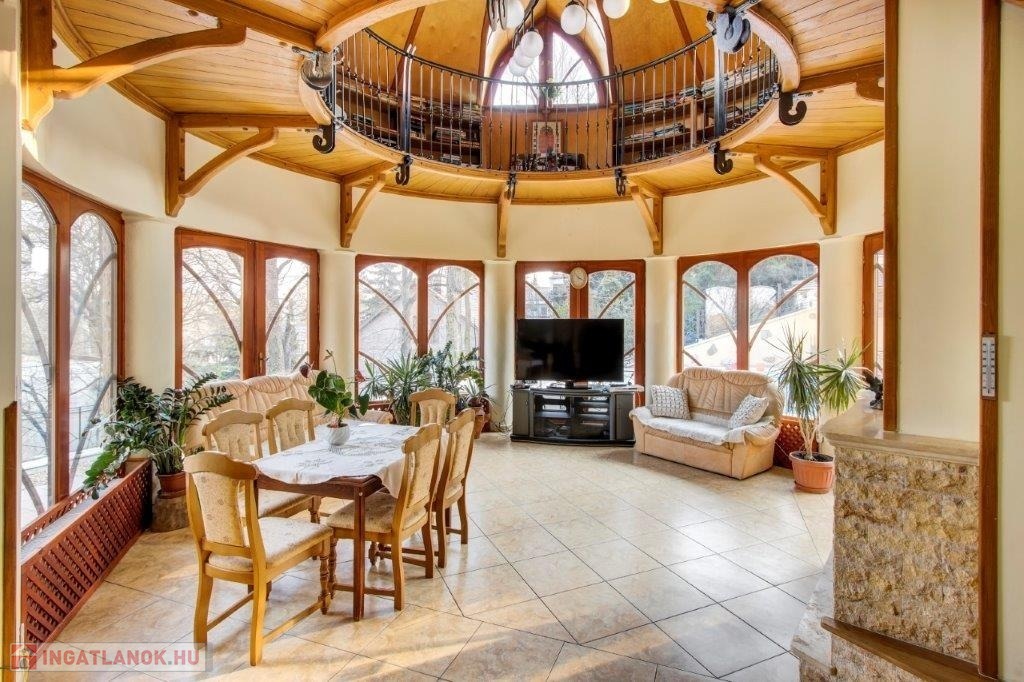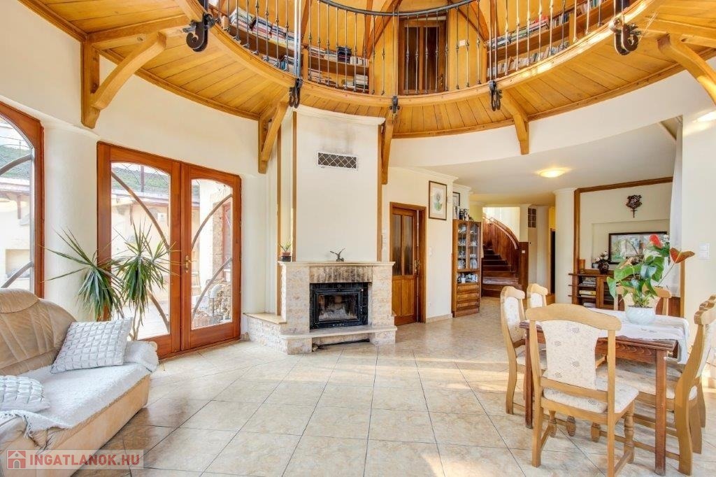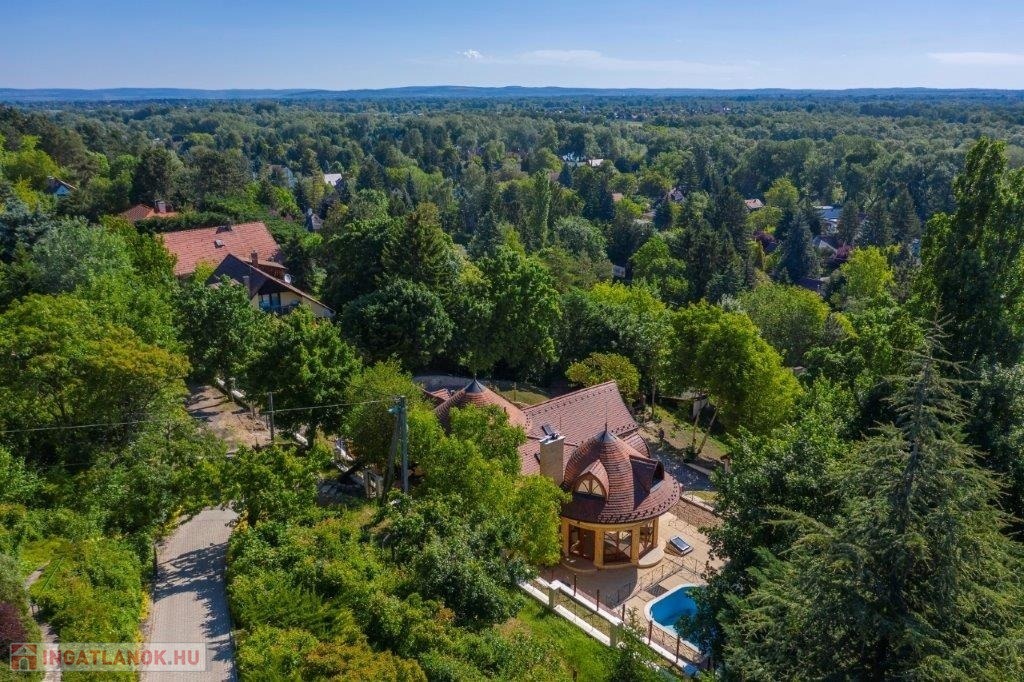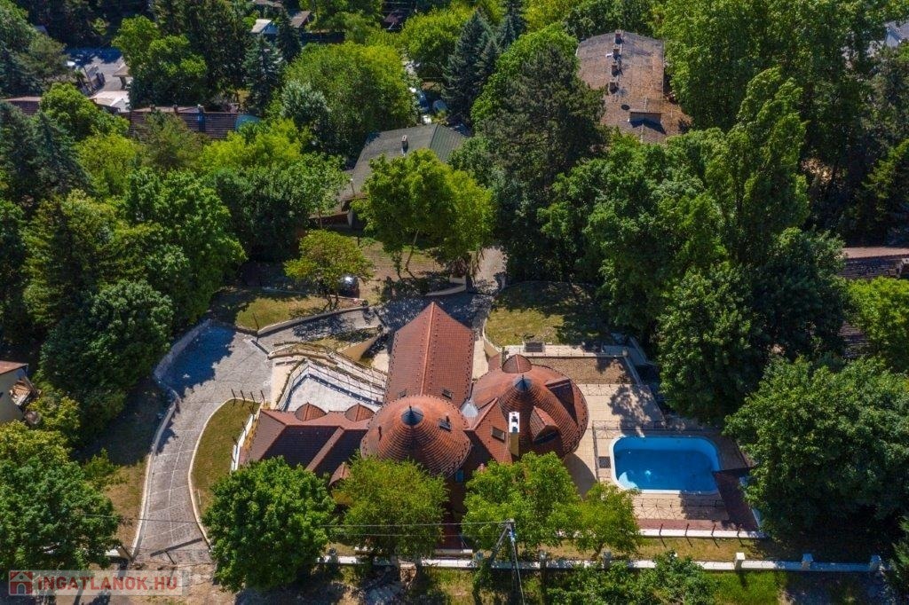 Szentendrén eladó egy 2011-ben épült, 3 szintes „Organikus” családi ház (6 hálószoba - mindegyik fürdőszobával, nappali kupolás galériával és hatalmas teraszok csodálatos panorámával, szabadtéri medence, boros „pince”, konditerem, szauna, az alsó szinten egy szolgálati lakás van kisegítő személy részére).