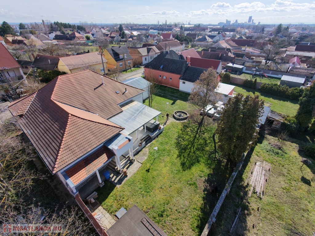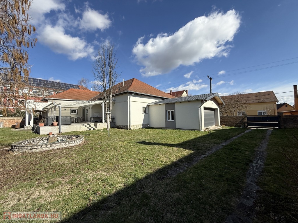 A kényelmes bejutást elektromos kapu és motoros garázskapu biztosítja, a garázsból közvetlenül is a házba léphetünk. Az udvaron további kétállásos garázs és egy tágas tárolóhelyiség is rendelkezésre áll. A biztonságról riasztó- és kamerarendszer gondoskodik.
