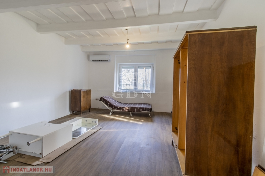 Az épület 1910 körül épült, fűtése gázkonvektor, kályha és hűtő-fűtő klíma, 2 szoba, fürdőszoba (felújítás alatt), konyha + étkező (felújítás alatt), valamint egy 27,44 nm-es veranda jellemzi. Külső bejárattal csatlakozik hozzá a pince lejáró, mely egy boros pincét rejt, valamint egy 29 nm-es garázs.
