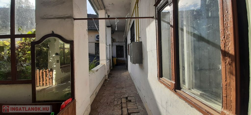 A teljes ingatlan hosszában megépítésre került egy gang, amely középen kiszélesedik.