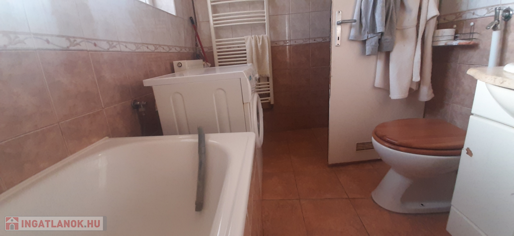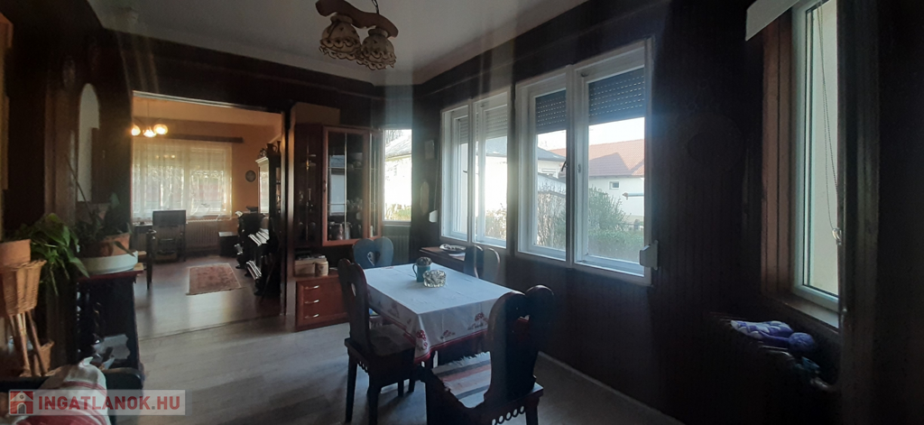 A belső terek világosak és otthonosak: nyílászárói részben modern műanyag, részben megőrzött, jó állapotú fa ablakok. A tetőtér beépíthető, a ház alatt pedig egy természetes fénnyel ellátott, ~40 m²-es pince került kialakításra – sokoldalúan hasznosítható.