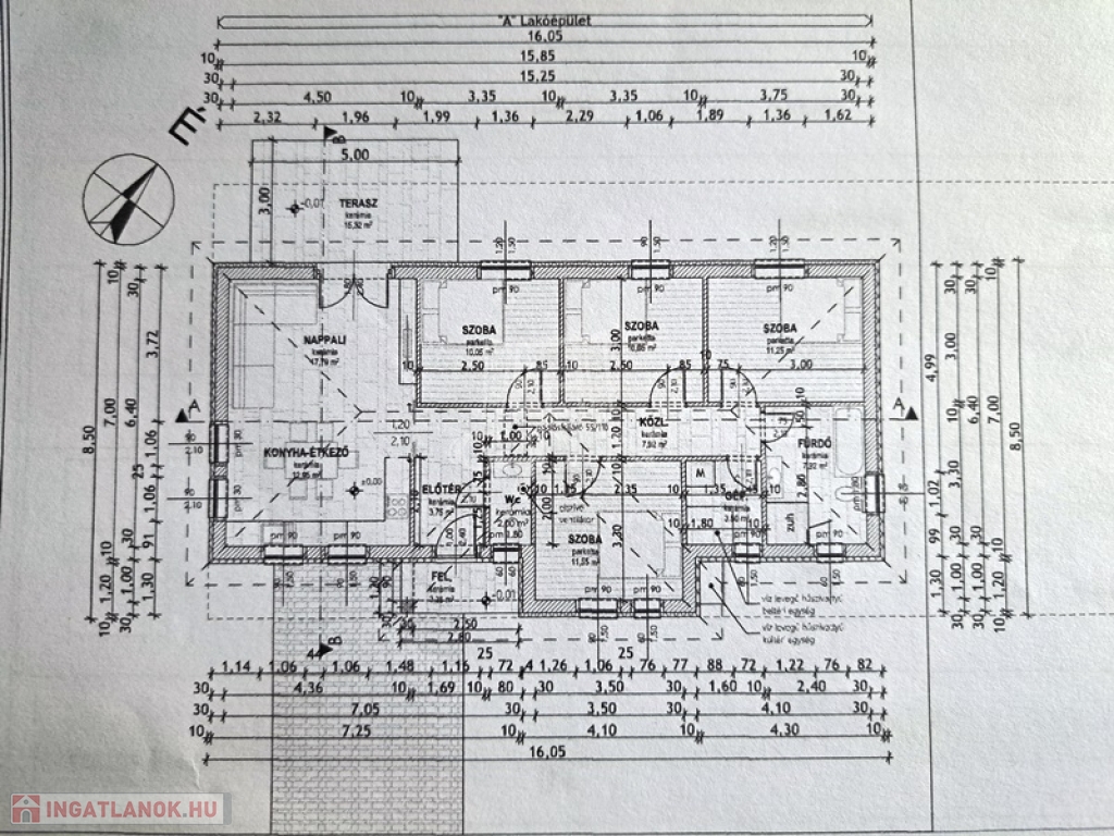 Helyiségei:amerikai konyha nappali 31,74 m2 teraszkapcsolattal,