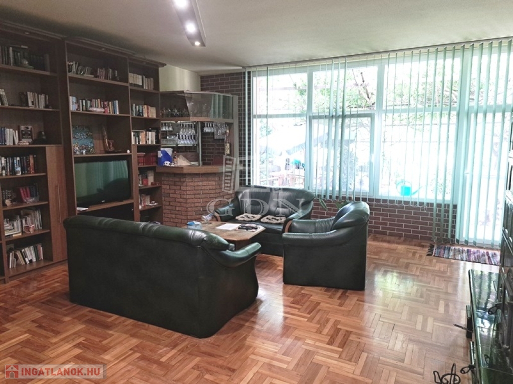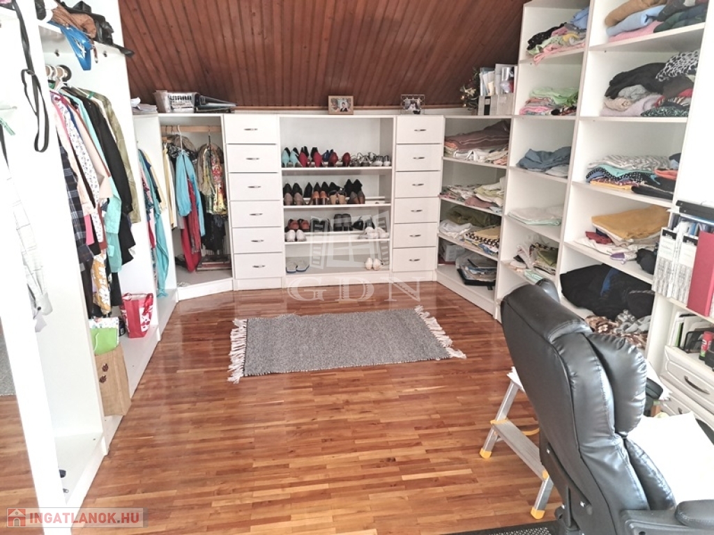 Helységei: 5 szoba, amerikai konyhás nappali, 2 fürdő, gardrób, mosókonyha, gépészeti helyiség, garázs, terasz