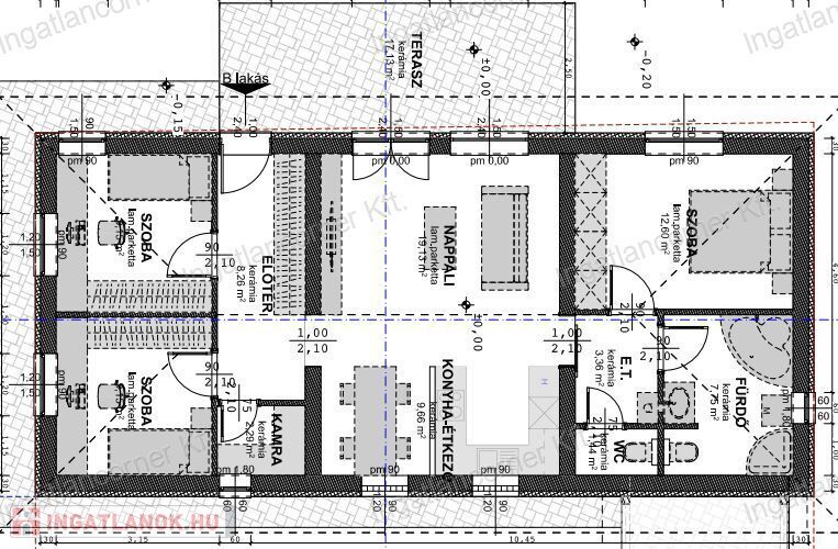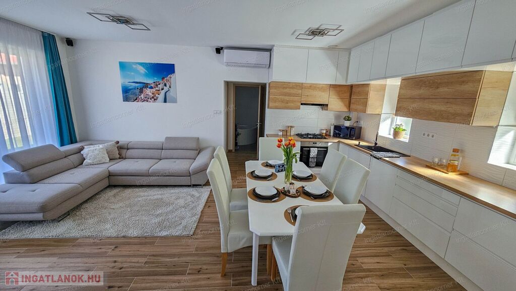 - Nappali -étkező -konyha, igényes, minőségi gépekkel ellátott konyhabútor( Hűtőszekrény, mosogatógép, főzőlap, sütő, elszívó berendezés)