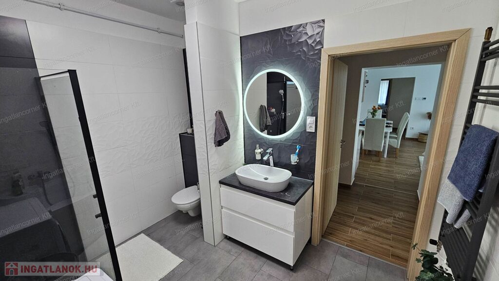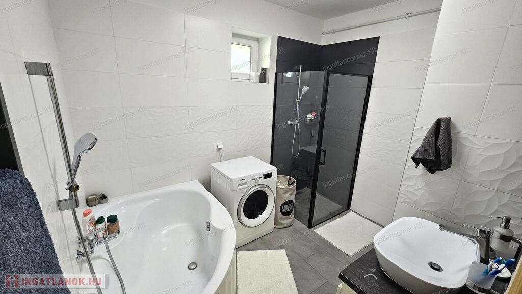 - Fürdőszoba épített zuhanykabinnal, sarokkáddal, WC-vel