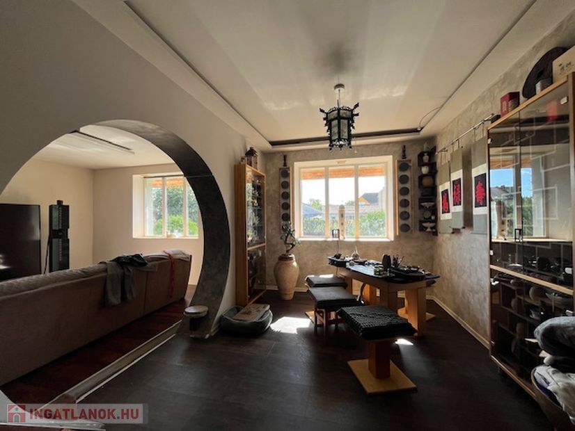 Szigethalmon Polgármesteri hivatal közelében 138 nm lakóterű 4+2 szobás felújított, átépített családiház 746 nm parkosított telekkel eladó.