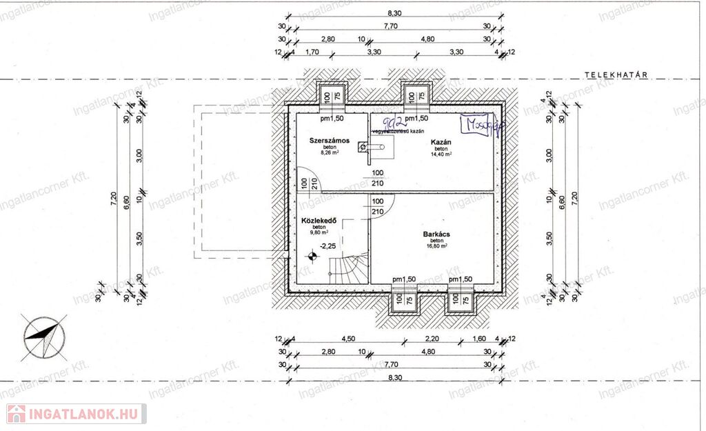 - Pince szint beton kefnis falazattal, extra vízszigeteléssel ellátott, plusz középső teherviseléssel ellátott.