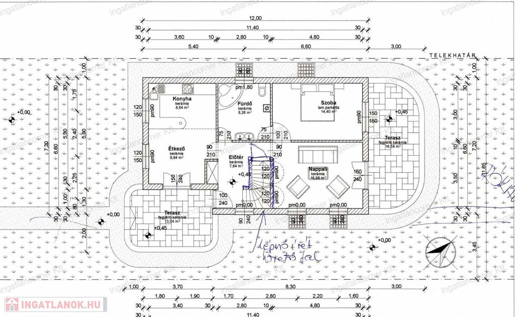 - Étkező -konyha terasz kapcsolattal, magas minőségű konyhabútorral, gépészettel