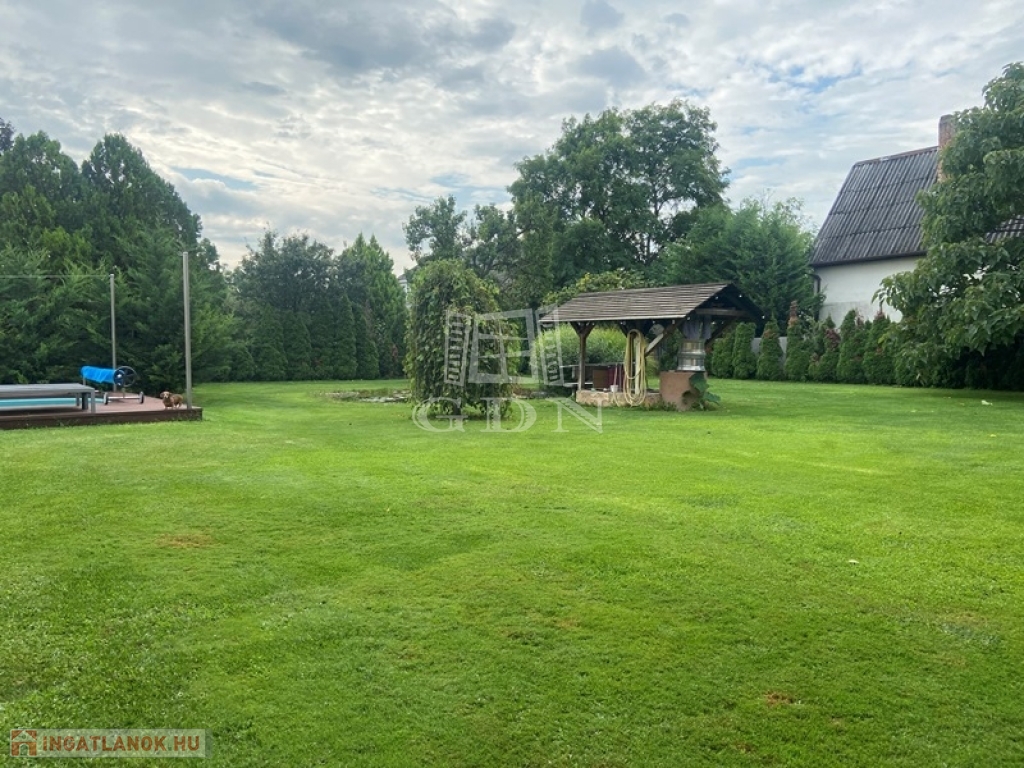 A parkosított, gondozott kert, díszfákkal, cserjékkel, Hummer automata öntözőrendszerrel, kerti sütögetővel, grillezővel, bográcsozóval, zárt kerítéssel, 3db automata kertkapuval, fedett terasszal, 3 db fúrt kúttal, Pedrolló szivattyúval, kerti csapokkal, 24m3 kerti tóval, Firestone kerti csobogóval, 40m3 megfelelő szűrőrendszerrel áll rendelkezésre.
