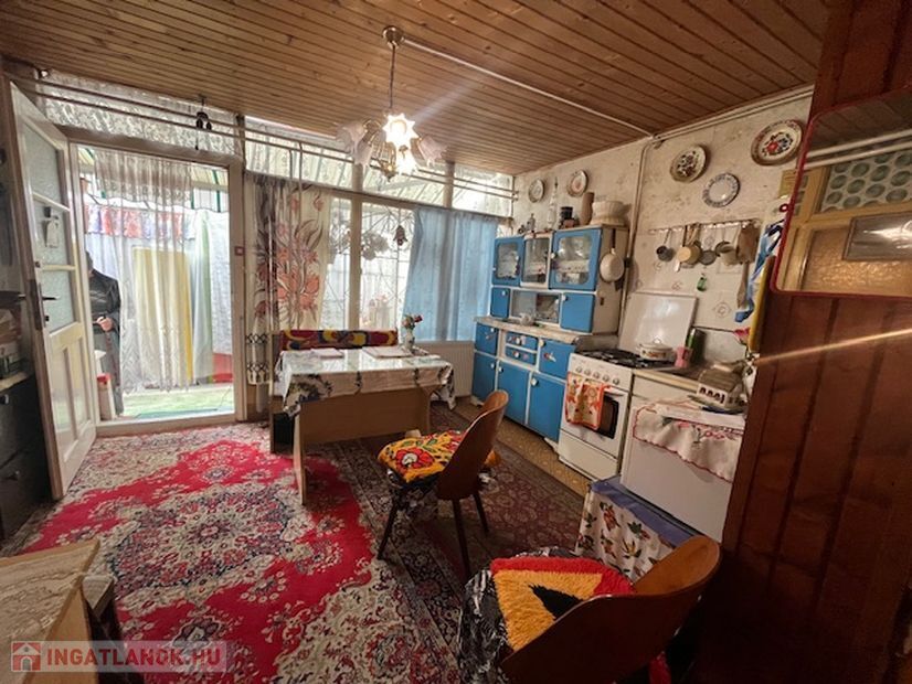 Közlekedőből nyílik egy nagy étkezős konyha, kamra, 3 külön bejáratú szoba, fürdőszoba.