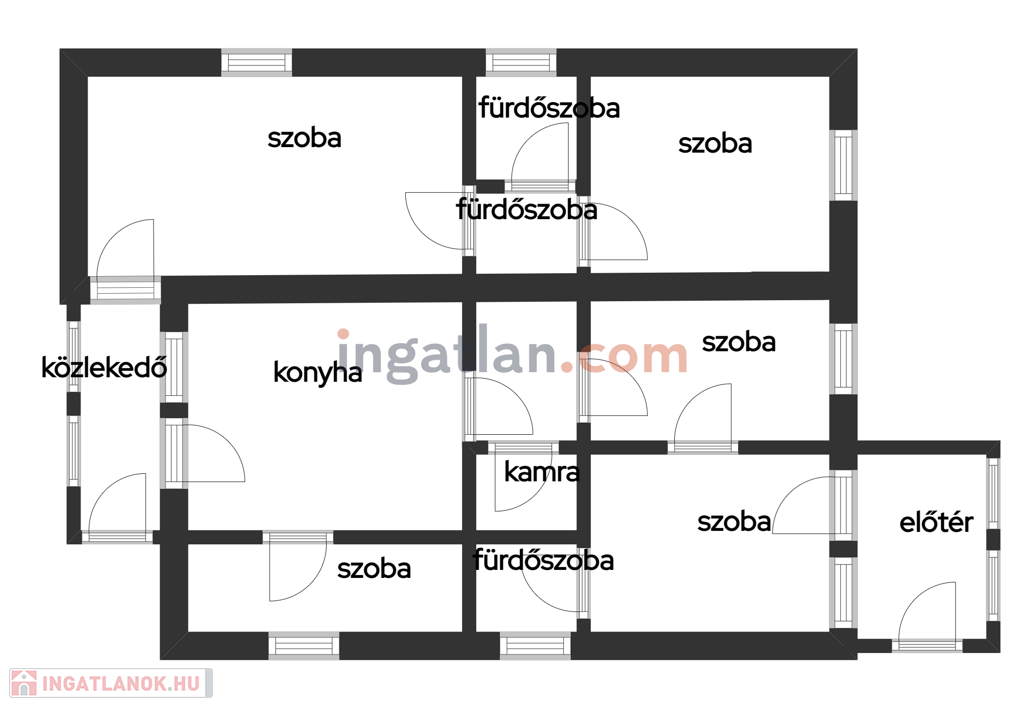 A ház tulajdonosa régen albérlőknek alakította ki az ingatlant,melynél az ajtók megmaradtak,de jelenleg az elosztása: előkertnél,előszoba,szoba,fürdőszoba.