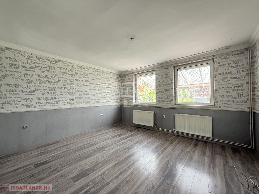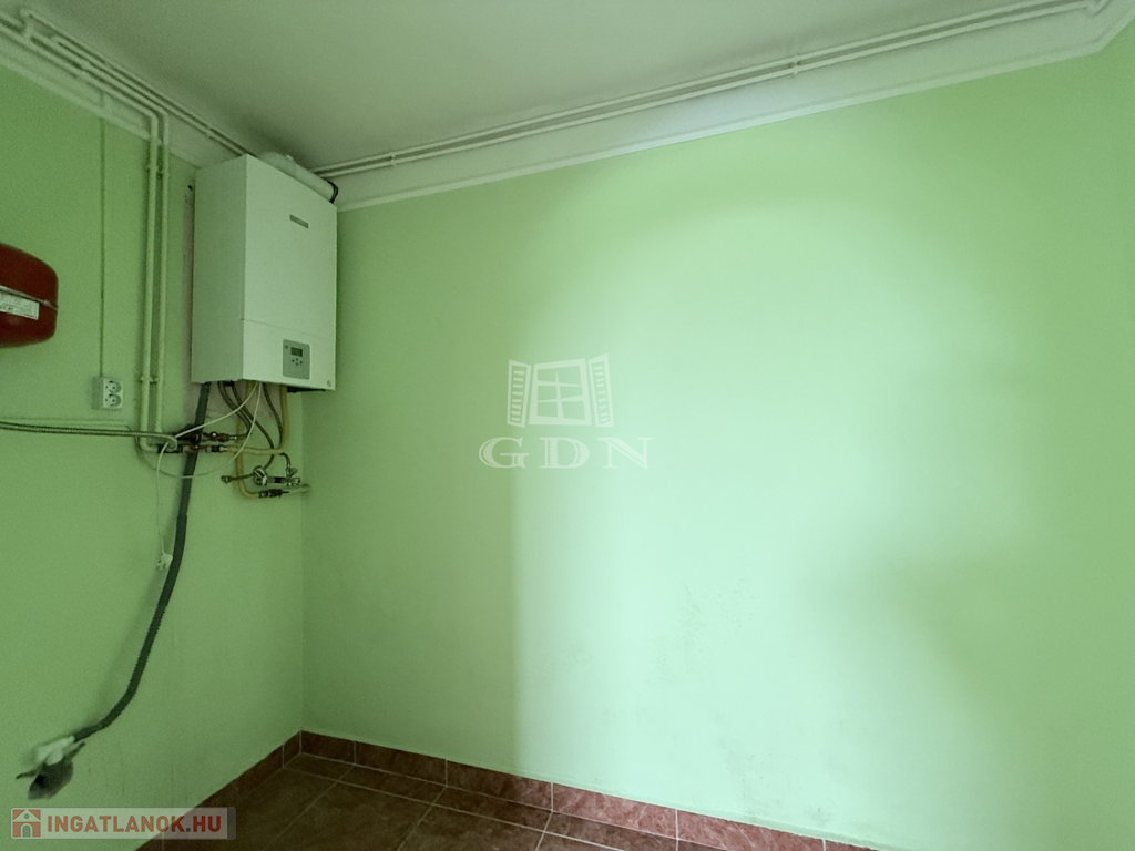 A konyhával ,két szobával, gardróbbal ,fürdőszobával és mosókonyhával rendelkező tégla falazatú ingatlan, külső nyílászárói műanyag thermó üvegesek, fűtését és meleg víz ellátását kondenzációs kazán látja el radiátoros hőleadással.