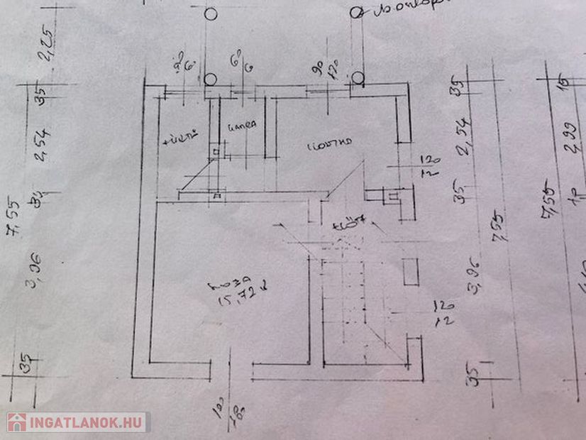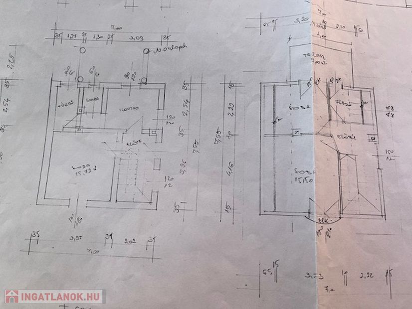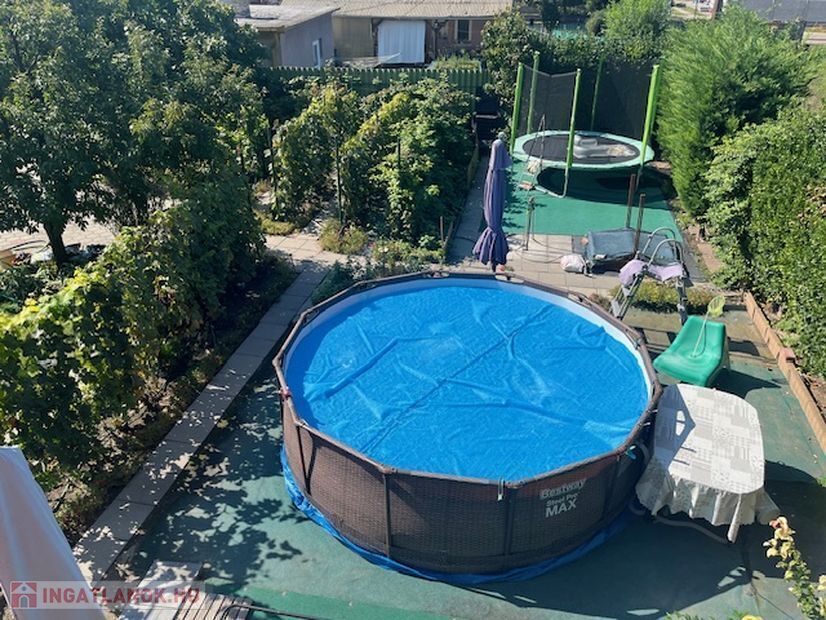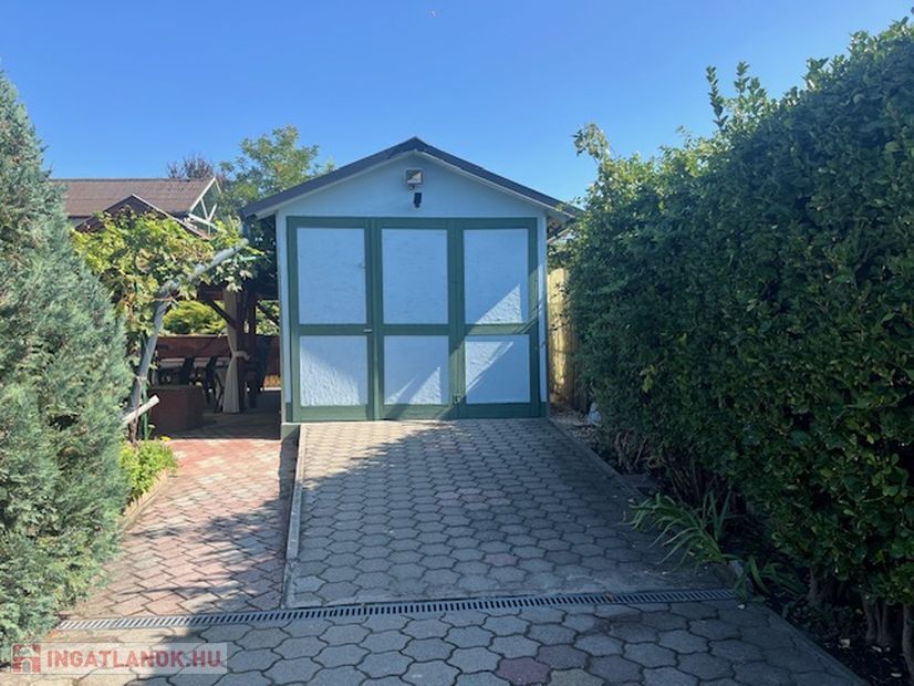 A telek első részében 22 nm garázs szerelőaknával, a hátsó részen,mely magassabban fekszik 40 nm teraszos könnyűszerkezetes ház található.