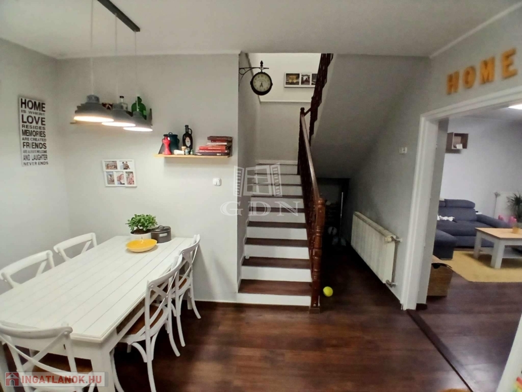 Szigethalom kertvárosi részén, nyugodt környezetben eladó egy 4 lakásos sorház 2. lakása. Ez a 127 m²-es (bruttó 148 m²) otthon 3 szobával, nappalival, 2 fürdőszobával és radiátoros fűtéssel várja új tulajdonosát. A kertkapcsolatos terasz és a hangulatos előkert tökéletes hely a pihenésre és a kikapcsolódásra. A garázs biztonságos tárolást biztosít az autónak.