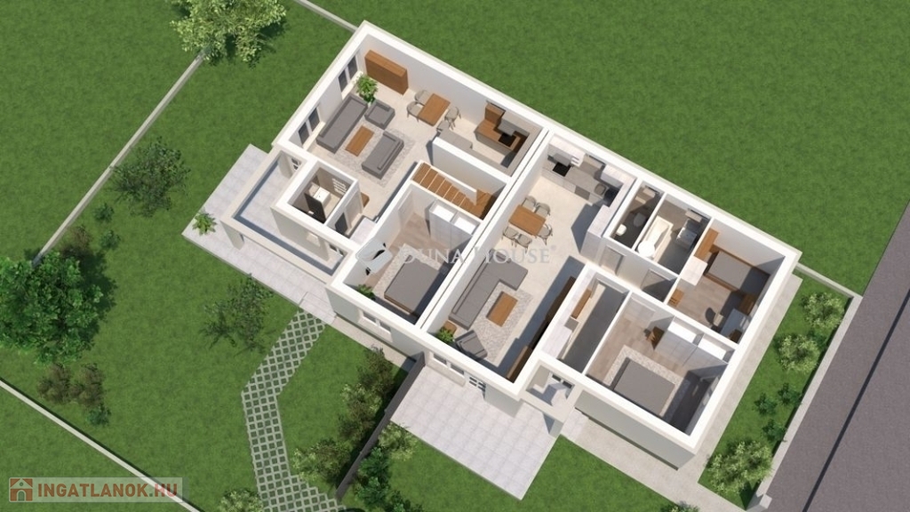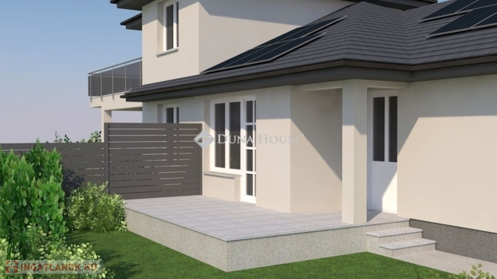 Eladó Szigethalmon csendes utcában egy kivételes, új építésű, két szintes, 90 nm-es iker családi ház hátsó része!