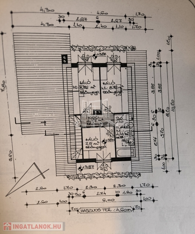 - az emeleten 3 háló (8,76 nm, 8,76 nm, 7,5 nm), és egy épített zuhanyzós fürdő is található