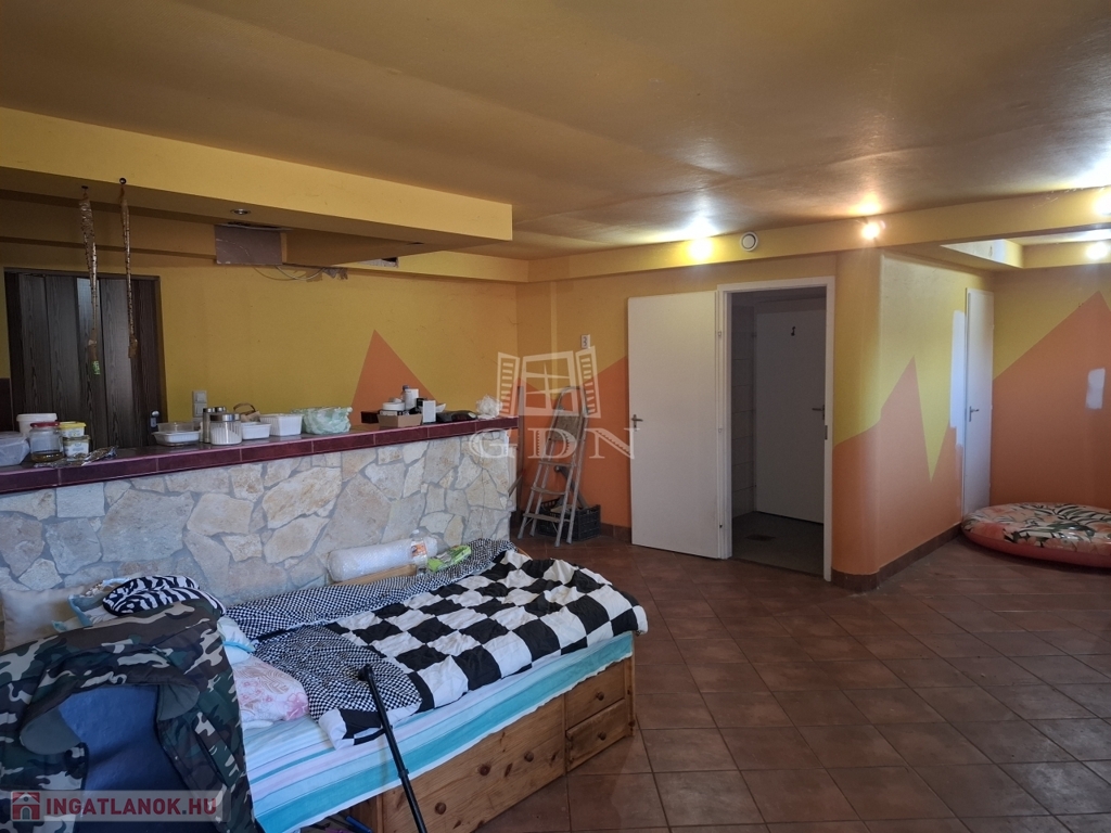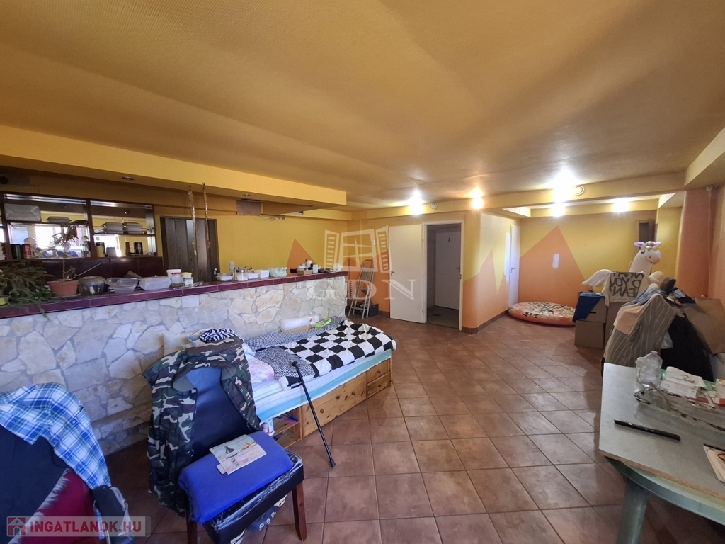 Szuterén szint: Régen vendéglátó egységként működő helyiség, 100 m² alapterülettel, hozzá tartozó kiszolgálóhelyiségekkel, tökéletes lehet vendéglátó egységnek vagy egyéb üzleti célra pl: pizzéria, konditerem, szépségszalon, akár lakhatásra.