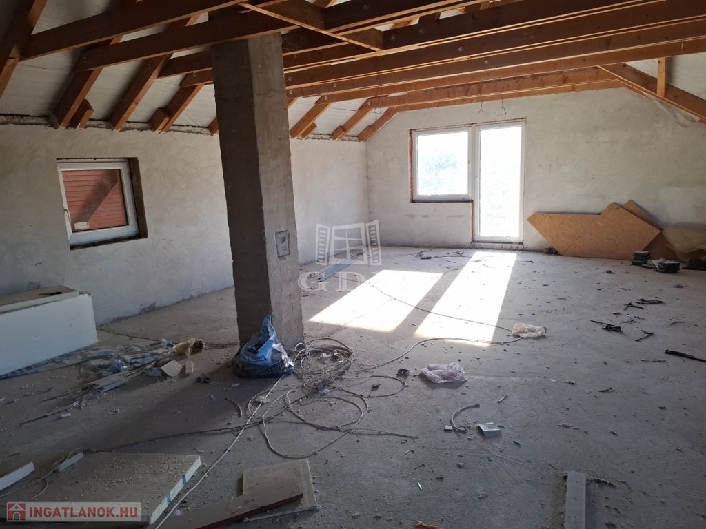 Felső szint: 60 m2 szerkezetkész állapotban, a befejezés a leendő tulajdonos elképzelése szerint történhet, további bővítési lehetőséget biztosítva.