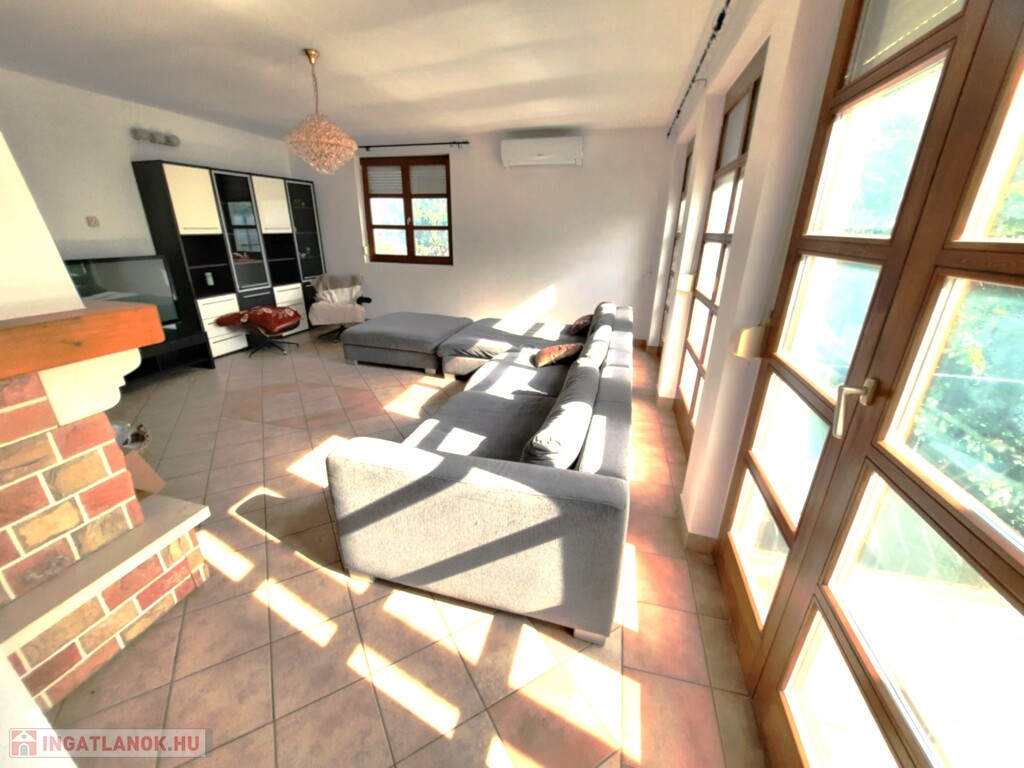 Masszív jól megépített ingatlan , a tulajdonos építtette, nem sajnálva a minőségi anyagokat. A ház egész nap fényárban úszik. Igényes formatervezett, fa árnyékolókkal is ellátott, borovi fenyő ablakokat, ajtókat építettek be. Mindkét szinten fa tüzelésű kandallóban gyönyörködhetünk, mely a téli hónapokban hasznos egy ekkora házban, és látványnak sem utolsó.