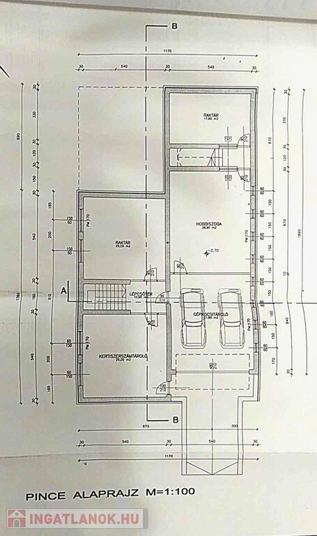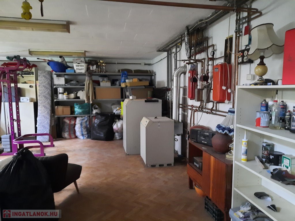 160nm, helyiségei: 2 állásos garázs, kazánház, műhely 39 nm, tároló 29nm, raktár 29nm, 18nm, A lakásból közvetlen lejárat van, a raktárból pedig az udvar felé kijárat. Ipari áram van.