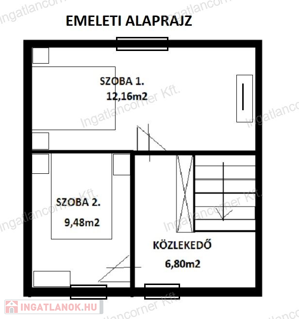 -két külön nyíló hálószoba érhető el, egy 12,16m2-es és egy 9,5m2 alapterületű.