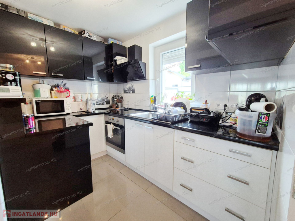 VÉTELÁR RÉSZÉT KÉPEZI: komplett asztalos által készített konyhabútor, beépített gépekkel (Electrolux légkeveréses sütő, indukciós főzőlap és a homlokzatra kivezetett Heinner konyhai elszívóval) és a nappaliban lévő média fal, ami a konyhabútor színeivel van szinkronban.