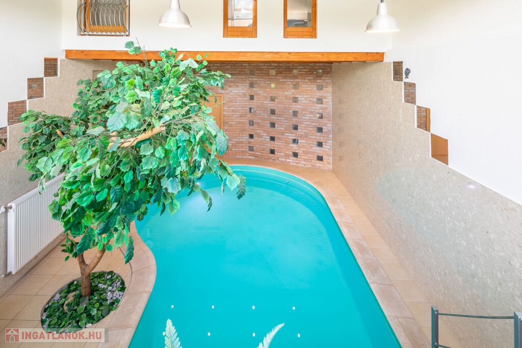 A beltéri úszómedence teljesen felszerelt, fűtése mindkét fűtési rendszerrel megoldható.