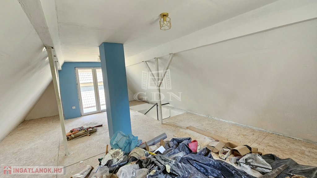 - 18 nm-es egy légterű helyiség ablakokkal. A belmagasság itt alacsonyabb, de hobbi szobának, dolgozószobának vagy tárolónak tökéletes helyiség lehet