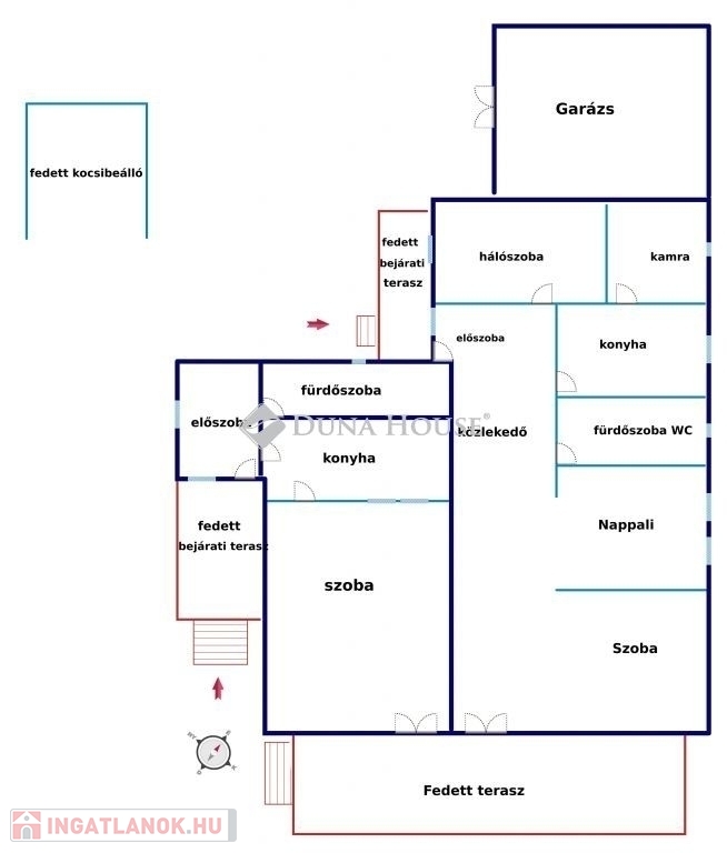 Két önálló bejárattal rendelkezik, akár összeköltözésre is alkalmas, illetve egy kisebb átalakítással egy nagyobb család kényelmét is szolgálhatja.