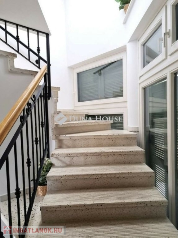 Szigligeten, a Fürdő utcában kínálunk megvételre egy ikerház keleti oldalát, teljesen elkülönített lakrésszel, kivételes elhelyezkedéssel, közvetlenül a Balaton közelében. Az ingatlan előtt futó út túloldalán már a vízpart található, a strand mindössze 120 méterre elérhető, miközben a településen nincs vasúti közlekedés, így a környezet nyugodt és zavartalan.A lakrész nettó 101 m² alapterületű, kétszintes kialakítású, jól használható, átgondolt térszervezéssel. A belső elosztás kifejezetten praktikus: összesen négy hálószoba, egy tágas nappaliétkező, két WC, egy zuhanyzó és egy kádas fürdőszoba áll rendelkezésre, így nagyobb család vagy vendégek fogadására is kényelmesen alkalmas. A felső szinten található egyik hálószobából balatoni panoráma nyílik, ami tovább növeli az ingatlan egyediségét.Az ingatlan jelenleg is sikeresen működő vendégházként üzemel, stabil bevételi lehetőséget biztosítva, így nemcsak saját használatra, hanem befektetésként is kiváló választás.A kertkapcsolat és a külső terek szintén erősítik az ingatlan használati értékét, a több terasz és a balatoni közelség valódi nyaraló hangulatot ad a mindennapokhoz. A kertben dézsa és szauna is kialakításra került, a gondozott zöldfelület fenntartását pedig automata locsolórendszer segíti.A lakrészhez két darab, egyenként 18 m²-es, önálló garázs tartozik, amelyek külön bejárattal rendelkeznek, és az egyikhez elektromos autótöltő tartozik.Műszaki szempontból az ingatlan jó állapotú, a fűtést gázkazán biztosítja, a melegvízellátás villanybojlerrel megoldott. A komfortot négy darab Daikin hőszivattyús klímaberendezés növeli, amelyek távolról is szabályozhatók, így az ingatlan érkezés előtt is a kívánt hőmérsékletre állítható. A működés korszerű és gazdaságos.A biztonságról kiépített kamerarendszer és riasztórendszer gondoskodik, a bejutást elektromos, távirányítással működtethető kapu biztosítja.A lakrészhez tartozó telek megközelítőleg 650 m², amely használati megosztás alapján került kialakításra, a pontos négyzetméter a megvásárlást követően kerül véglegesítésre.A jelen hirdetésben szereplő keleti lakrész mellett a nyugati oldal is megvásárolható, így igény esetén a teljes ingatlan egyben is elérhető, amely további lehetőségeket kínál nagyobb család vagy befektetési célú hasznosítás esetén.Az ingatlan egy helyrajzi számon található, ugyanakkor ügyvéd által készített használati megosztással rendelkezik, a két lakrész egymástól fizikailag is teljesen leválasztott, külön bejárattal és külön közműórákkal használható. A kialakításának köszönhetően használatában egy önálló családi ház érzetét nyújtja.