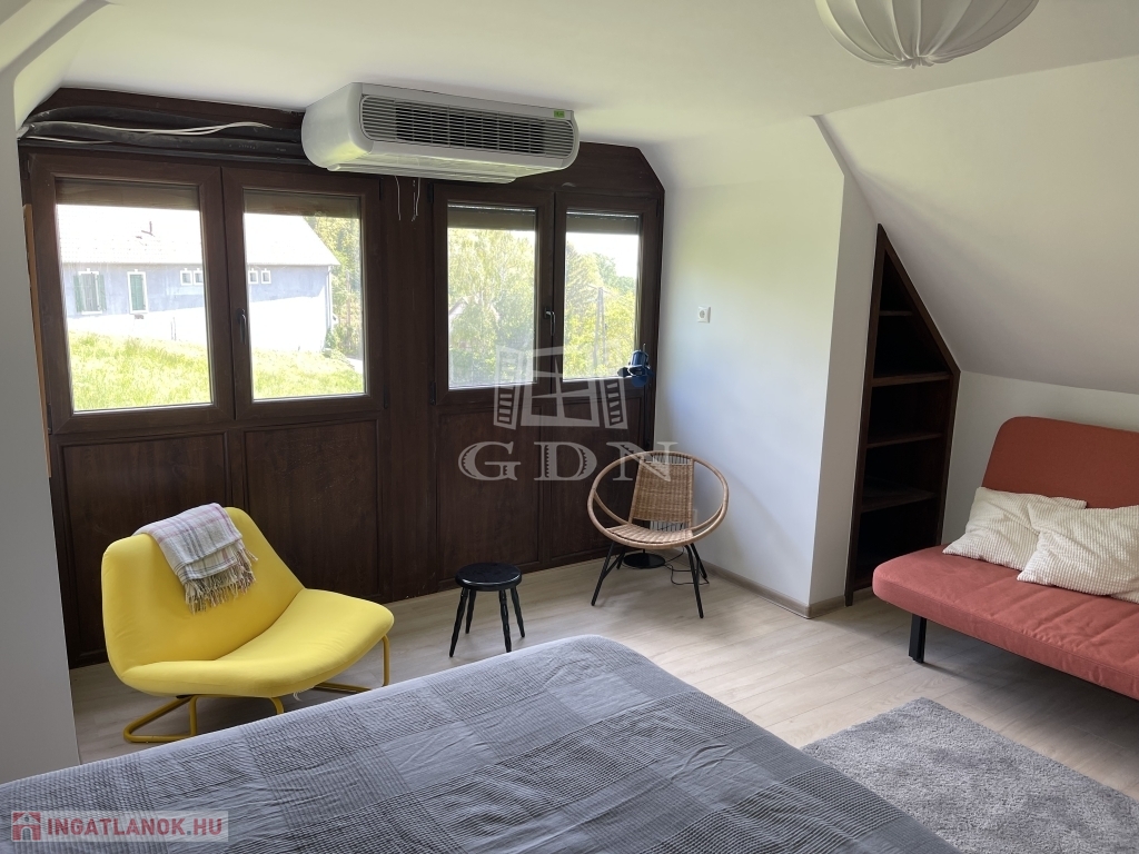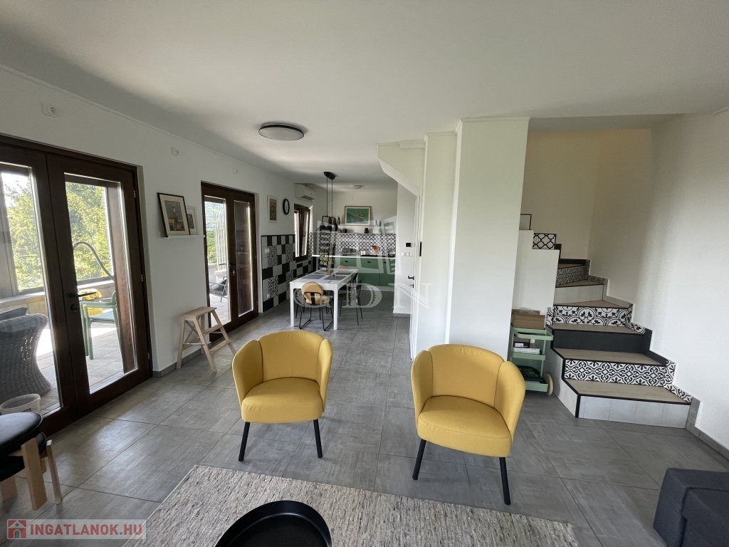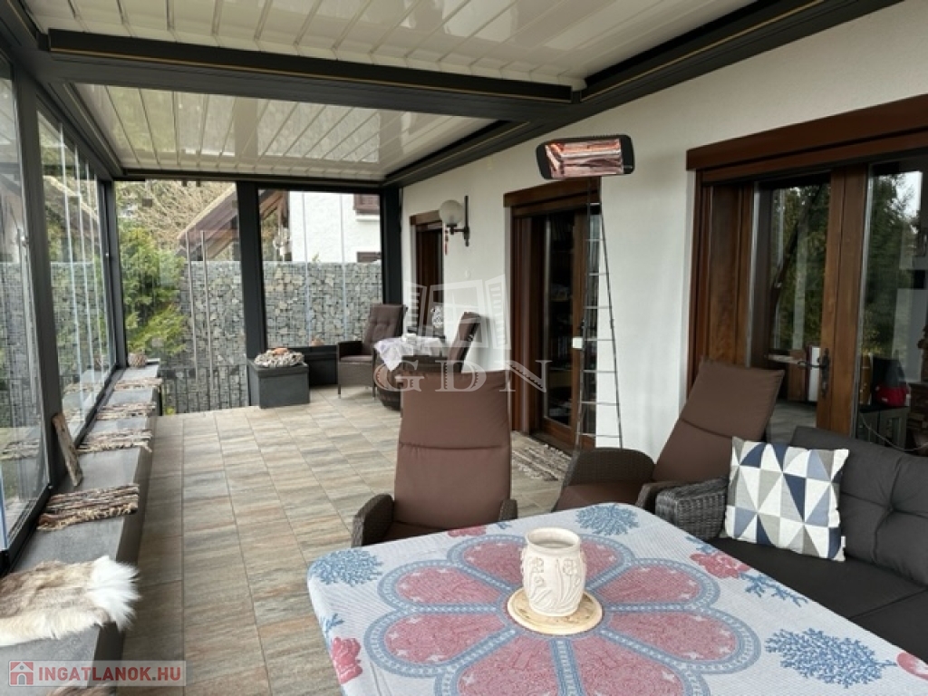 jakuzzi (feláras) riasztó, parkosított kert, automata öntöző rendszer, a házban meg cserépkályha.