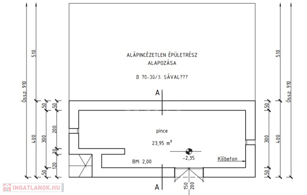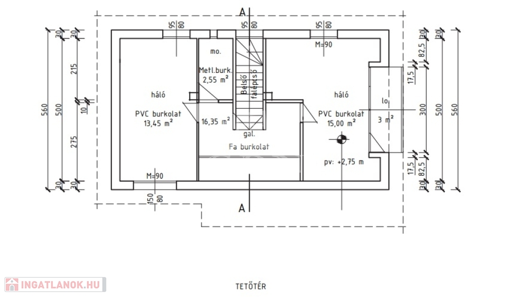 Ingatlan nettó nm tulajdoni lap szerint: 95 nm