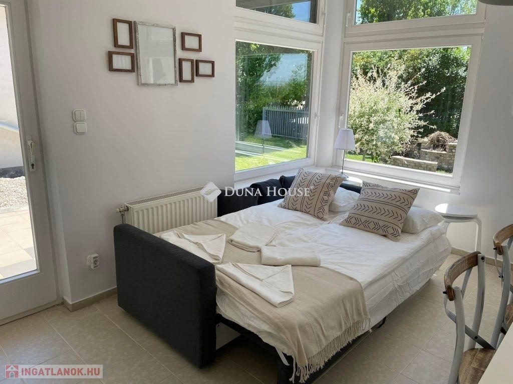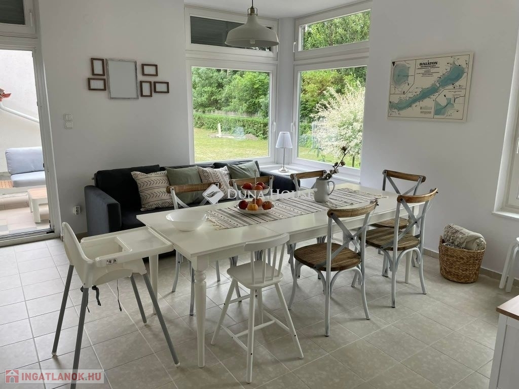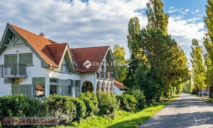 Szigligeten, a Fürdő utcában kínálunk megvételre egy kivételes adottságú, közvetlen vízpart közeli ingatlant, amely egy helyrajzi számon található, mégis két teljesen elkülönített lakrészként működik. Az ingatlan előtt futó út túloldalán már a Balaton található, a strand mindössze 120 méterre elérhető, miközben a településen nincs vasúti közlekedés, így a környezet nyugodt és zavartalan.A két lakrész külön-külön is használható és értékesíthető, ugyanakkor egyben egy olyan komplex ingatlant alkotnak, amely ritka lehetőséget kínál mind saját használatra, mind befektetési célra.A teljes nettó lakótér megközelítőleg 212 m², amely két szinten helyezkedik el. Az ingatlan összesen hét szobával rendelkezik, ebből több hálószoba és két nappali jellegű élettér biztosítja a kényelmes használatot. A vizesblokkok elosztása jól átgondolt: az ingatlanban összesen két fürdőszoba, négy WC és két zuhanyzó áll rendelkezésre, így több fő egyidejű használata is kényelmesen megoldható.A keleti lakrész jelenleg is sikeresen működő vendégházként üzemel, stabil bevételi lehetőséget biztosítva, így az ingatlan nemcsak otthonként, hanem kész üzleti modellként is megállja a helyét.A külső terek külön értéket képviselnek: több terasz és erkély áll rendelkezésre, amelyek közül több balatoni kilátással rendelkezik, az emeleti egyik hálószobából pedig panoráma nyílik a Balatonra. A kert parkosított, automata locsolórendszerrel ellátott, a pihenést dézsa és szauna teszi teljessé.A gépjárművek elhelyezését két darab, egyenként 18 m²-es, önálló garázs biztosítja, amelyek közül az egyik elektromos autó töltésére alkalmas kialakítással rendelkezik.Műszaki szempontból az ingatlan jó állapotú, tégla szerkezetű, a fűtést gázkazán biztosítja, a melegvízellátás villanybojlerrel megoldott. A komfortot összesen hat darab Daikin hőszivattyús klímaberendezés biztosítja, amelyek távolról is szabályozhatók, így az ingatlan érkezés előtt is előkészíthető. A helyiségek klimatizáltak, az üzemeltetés korszerű és gazdaságos. Mindkét lakrészben található egy-egy Haas+Sohn fatüzelésű kandalló, amely hangulatos és kiegészítő fűtési lehetőséget is biztosít.A biztonságról kiépített kamerarendszer és riasztórendszer gondoskodik, a bejutást elektromos, távirányítással működtethető kapu biztosítja.A teljes telek mérete 1384 m², amely ügyvéd által készített használati megosztással két részre osztott. Mindkét lakrész külön bejárattal, saját telekrésszel és külön közműórákkal rendelkezik, így használatuk egymástól független, használatában mindkét oldal önálló családi ház érzetét nyújtja.Az ingatlan külön-külön és egyben is megvásárolható, amely egyedülálló rugalmasságot biztosít a leendő tulajdonos számára.