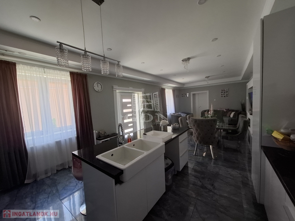 A ház 3 szobás, amerikai konyhás, nagy nappalival, nagy fürdőszobával és mosókonyhával valamint egy praktikus gardróbszobával is rendelkezik.