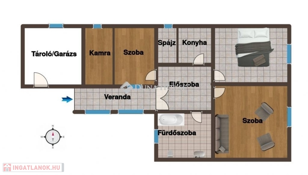 Veranda: 5,26 m² + előterasz: 6,7 m²*