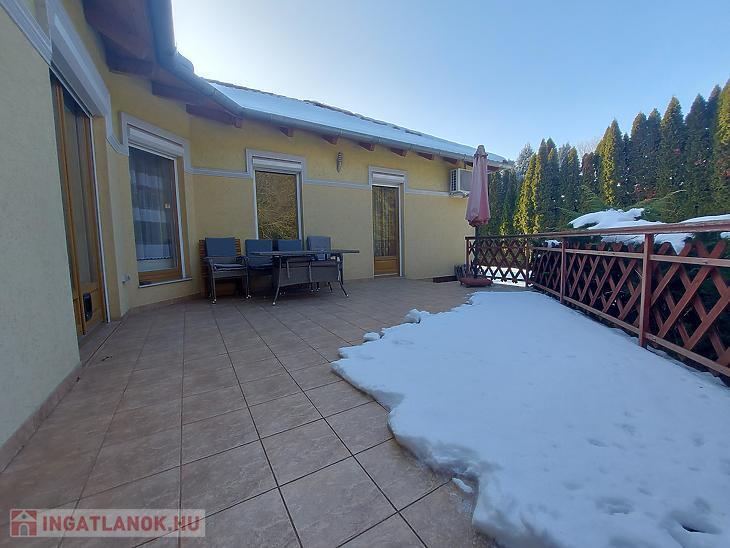 A nyílászárók fa típusú termo üvegesek, a ház klímával felszerelt, így minden évszakban komfortos otthont biztosít.