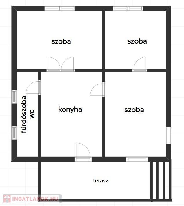 - a 73 nm-es hasznos alapterületű lakóépület helyiségei: tágas konyha- étkező, 3 szoba ( 21 nm, 17 nm, 11 nm); zuhanyzós fürdőszoba illemhellyel