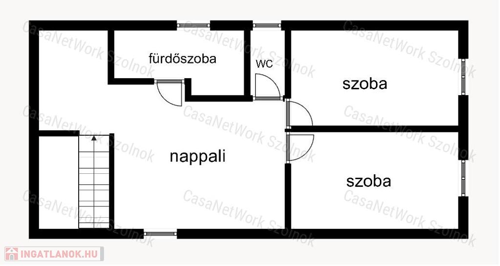- fürdőszoba, az emeleten nappali, két szoba, fürdőszoba