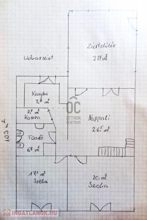 - a földszinten 2 szoba, nappali, konyha-étkező, fürdőszoba + WC, zárt terasz, kamra, és közlekedő található