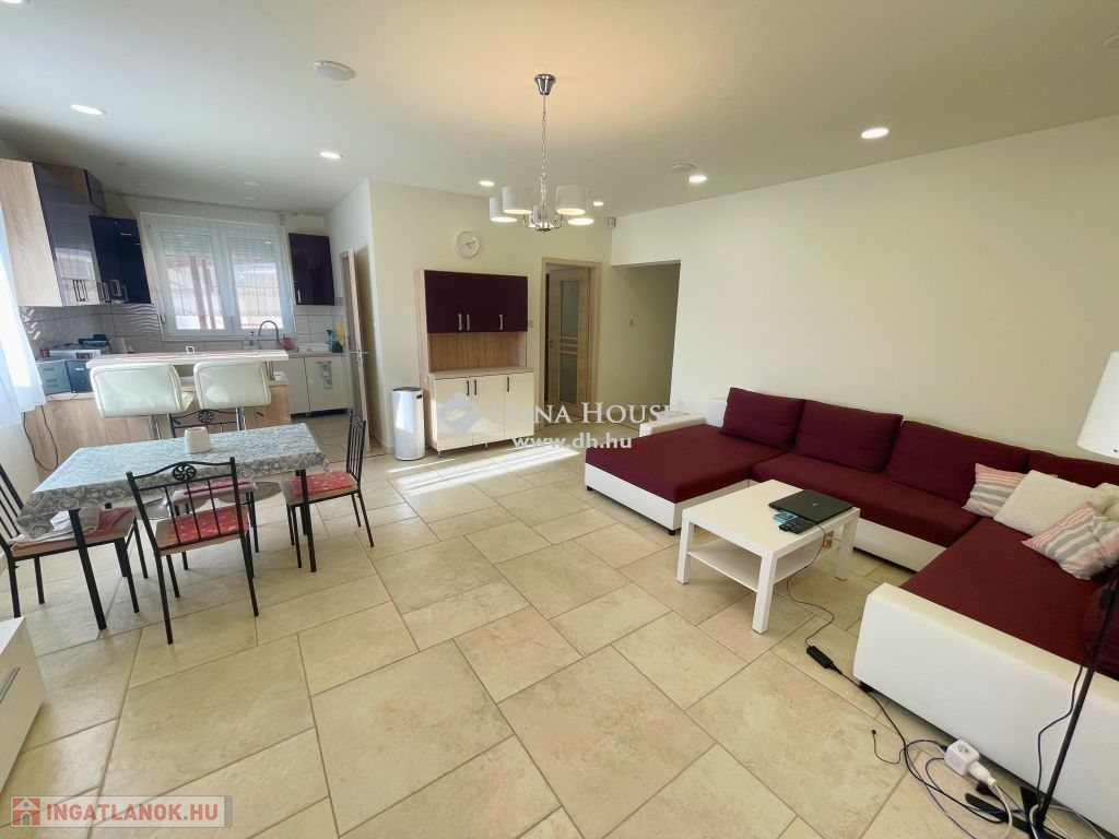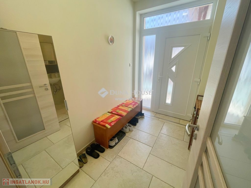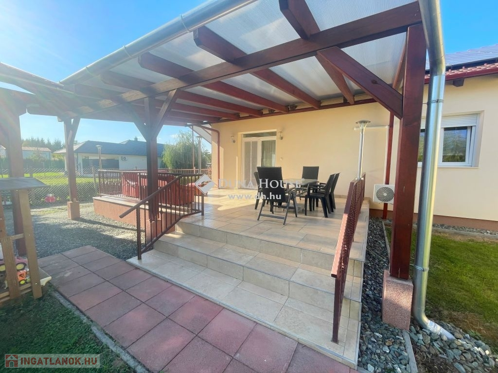 Az ingatlan egy csendes, magánútról megközelíthető belső telken bújik meg, 2017-ben épült. A ház külső klasszikus megjelenése és kimagasló műszaki tartalma, modern letisztult belsővel van ötvözve. Az épület ikerházas kialakítású, egyszintes , a szomszédtól jól elszeparált, teljesen privát életteret biztosít.. Egy fedett terasz felőli előtér vezet az amerikai konyhás nappaliba, melyhez 26 m2 fedett terasz csatlakozik a kert felé fordulva, déli tájolással.